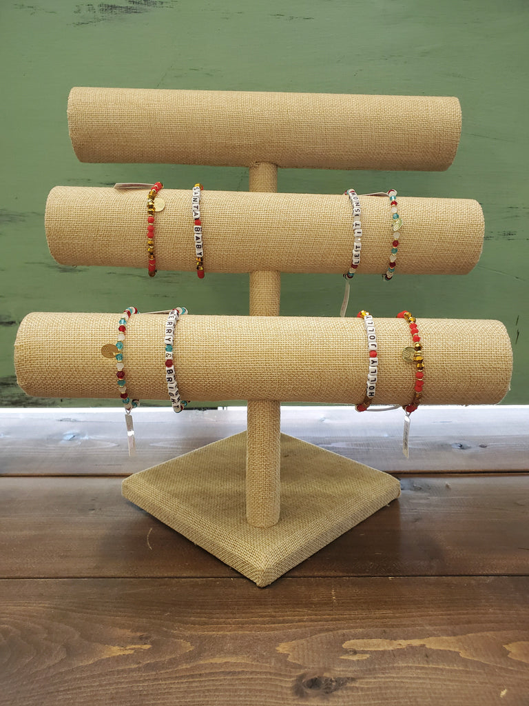 Add festive sparkle to your wrist with these Holiday Glam Stretch Bracelets! Featuring colorful and metallic beads paired with cheerful holiday sayings in bold block letter beads, they’re the perfect playful accessory to spread joyful vibes wherever you go. Comfortable and easy to wear, these bracelets bring a fun, bright touch to any holiday outfit.