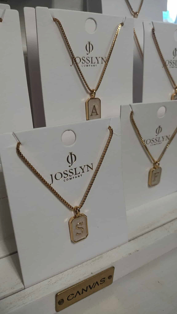 Add a touch of sparkle to your look with our Pearl Rectangle Initials Necklace. Featuring a classic look with initials made of gold plating set on a pearl background, this necklace is the perfect way to showcase your unique personality. Make a statement with this beautiful accessory!