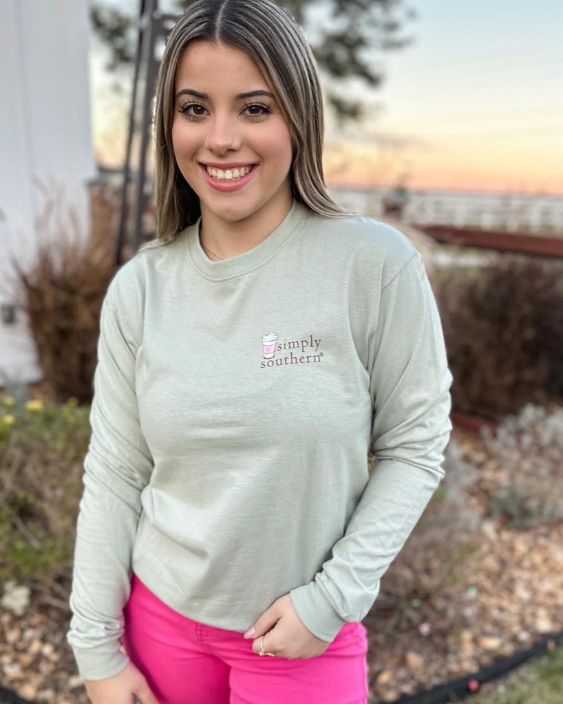 Get your coffee fix in style with our Coffee Girlie T-Shirt! Made with seafoam green fabric, this long sleeve shirt is perfect for any weather. Whether you like it cold or hot (you like coffee a lot), you'll love the comfort and charm this shirt brings to your wardrobe.
